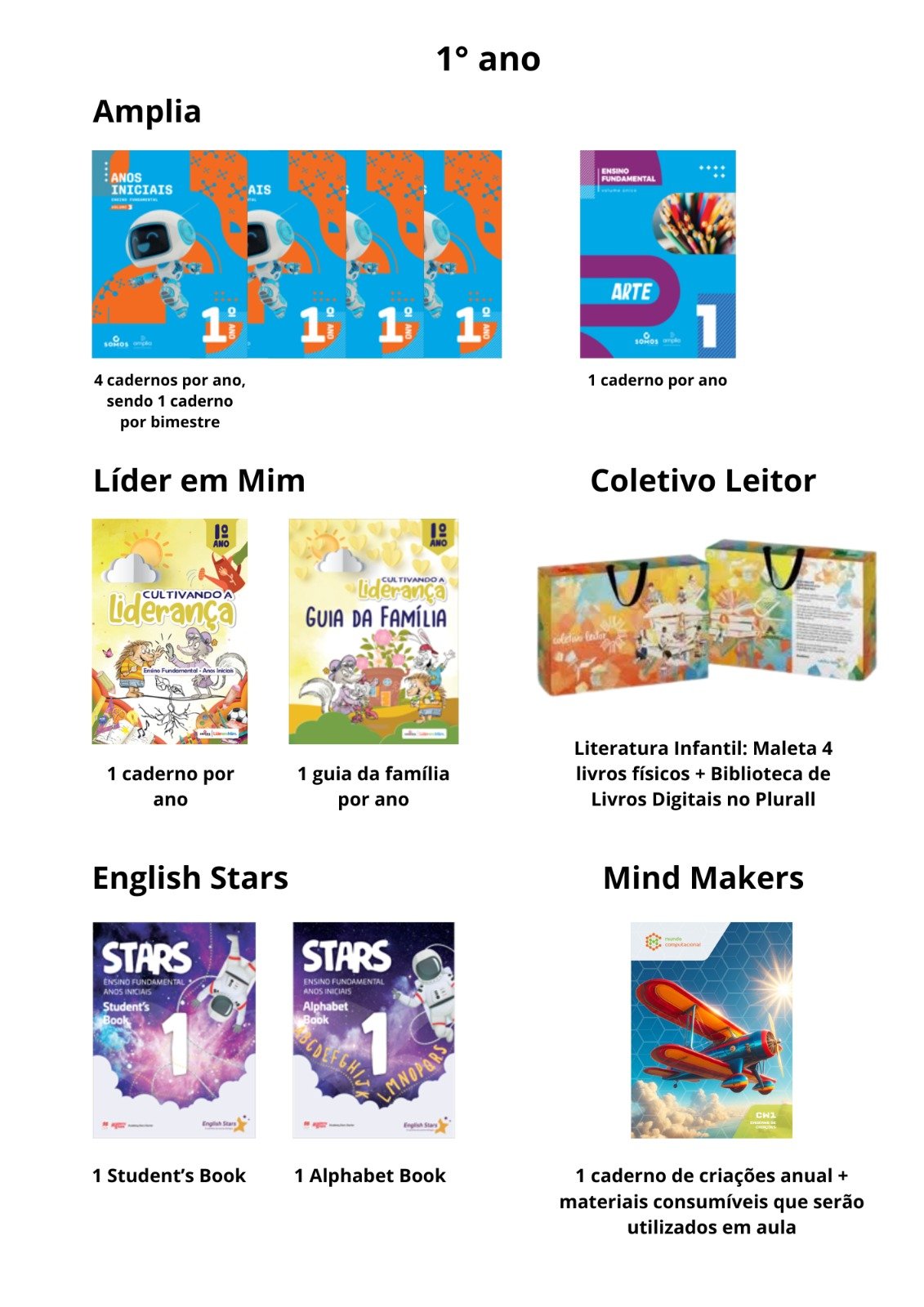 KIT COMPOSTO POR: AMPLIA: 4 CADERNOS POR ANO (SENDO 1 CADERNO POR BIMESTRE ) + 1 CADERNO DE ARTE